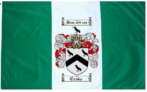 Croke Family Crest Flag / Coat of Arms Flag. You will receive a high quality 3' x 5' Polyester flag with two brass grommets. Proudly display your family heritage with this flag, or hang as a banner on a wall. Our flags make great gifts for birthdays, weddings, anniversaries, fathers day, mothers day, groomsmen gifts, and any other occasion