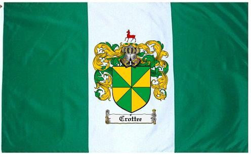 Crottee Family Crest Flag / Coat of Arms Flag. You will receive a high quality 3' x 5' Polyester flag with two brass grommets. Proudly display your family heritage with this flag, or hang as a banner on a wall. Our flags make great gifts for birthdays, weddings, anniversaries, fathers day, mothers day, groomsmen gifts, and any other occasion