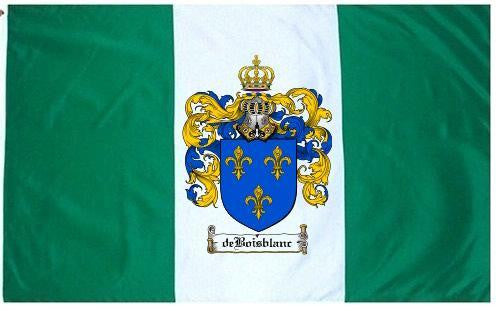 Deboisblanc Family Crest Flag / Coat of Arms Flag. You will receive a high quality 3' x 5' Polyester flag with two brass grommets. Proudly display your family heritage with this flag, or hang as a banner on a wall. Our flags make great gifts for birthdays, weddings, anniversaries, fathers day, mothers day, groomsmen gifts, and any other occasion