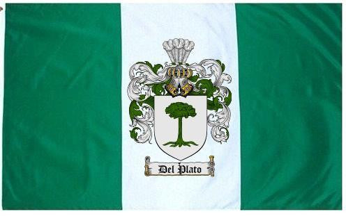 Delplato Family Crest Flag / Coat of Arms Flag. You will receive a high quality 3' x 5' Polyester flag with two brass grommets. Proudly display your family heritage with this flag, or hang as a banner on a wall. Our flags make great gifts for birthdays, weddings, anniversaries, fathers day, mothers day, groomsmen gifts, and any other occasion