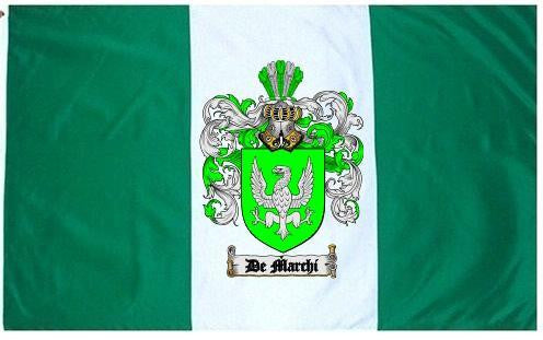 Demarchi Family Crest Flag / Coat of Arms Flag. You will receive a high quality 3' x 5' Polyester flag with two brass grommets. Proudly display your family heritage with this flag, or hang as a banner on a wall. Our flags make great gifts for birthdays, weddings, anniversaries, fathers day, mothers day, groomsmen gifts, and any other occasion