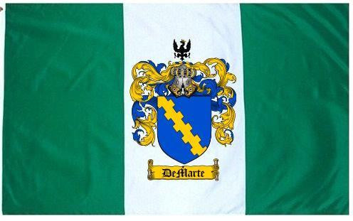 Demarte Family Crest Flag / Coat of Arms Flag. You will receive a high quality 3' x 5' Polyester flag with two brass grommets. Proudly display your family heritage with this flag, or hang as a banner on a wall. Our flags make great gifts for birthdays, weddings, anniversaries, fathers day, mothers day, groomsmen gifts, and any other occasion