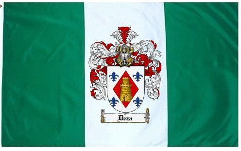 Deza Family Crest Flag / Coat of Arms Flag. You will receive a high quality 3' x 5' Polyester flag with two brass grommets. Proudly display your family heritage with this flag, or hang as a banner on a wall. Our flags make great gifts for birthdays, weddings, anniversaries, fathers day, mothers day, groomsmen gifts, and any other occasion