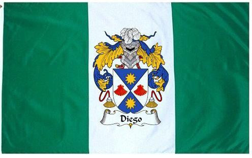 Diego Family Crest Flag / Coat of Arms Flag. You will receive a high quality 3' x 5' Polyester flag with two brass grommets. Proudly display your family heritage with this flag, or hang as a banner on a wall. Our flags make great gifts for birthdays, weddings, anniversaries, fathers day, mothers day, groomsmen gifts, and any other occasion