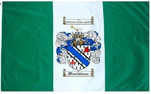 Dinnistoun Family Crest Flag / Coat of Arms Flag. You will receive a high quality 3' x 5' Polyester flag with two brass grommets. Proudly display your family heritage with this flag, or hang as a banner on a wall. Our flags make great gifts for birthdays, weddings, anniversaries, fathers day, mothers day, groomsmen gifts, and any other occasion