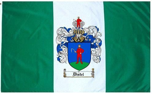 Distel Family Crest Flag / Coat of Arms Flag. You will receive a high quality 3' x 5' Polyester flag with two brass grommets. Proudly display your family heritage with this flag, or hang as a banner on a wall. Our flags make great gifts for birthdays, weddings, anniversaries, fathers day, mothers day, groomsmen gifts, and any other occasion