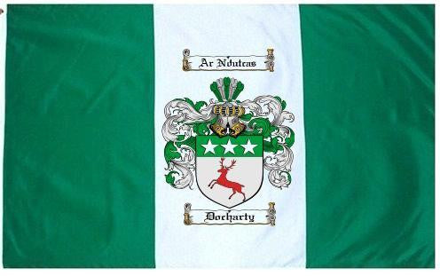 Docharty Family Crest Flag / Coat of Arms Flag. You will receive a high quality 3' x 5' Polyester flag with two brass grommets. Proudly display your family heritage with this flag, or hang as a banner on a wall. Our flags make great gifts for birthdays, weddings, anniversaries, fathers day, mothers day, groomsmen gifts, and any other occasion