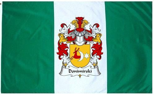 Donimirski Family Crest Flag / Coat of Arms Flag. You will receive a high quality 3' x 5' Polyester flag with two brass grommets. Proudly display your family heritage with this flag, or hang as a banner on a wall. Our flags make great gifts for birthdays, weddings, anniversaries, fathers day, mothers day, groomsmen gifts, and any other occasion