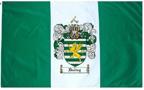 Doning Family Crest Flag / Coat of Arms Flag. You will receive a high quality 3' x 5' Polyester flag with two brass grommets. Proudly display your family heritage with this flag, or hang as a banner on a wall. Our flags make great gifts for birthdays, weddings, anniversaries, fathers day, mothers day, groomsmen gifts, and any other occasion