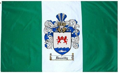 Donnilly Family Crest Flag / Coat of Arms Flag. You will receive a high quality 3' x 5' Polyester flag with two brass grommets. Proudly display your family heritage with this flag, or hang as a banner on a wall. Our flags make great gifts for birthdays, weddings, anniversaries, fathers day, mothers day, groomsmen gifts, and any other occasion