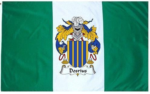 Dosrius Family Crest Flag / Coat of Arms Flag. You will receive a high quality 3' x 5' Polyester flag with two brass grommets. Proudly display your family heritage with this flag, or hang as a banner on a wall. Our flags make great gifts for birthdays, weddings, anniversaries, fathers day, mothers day, groomsmen gifts, and any other occasion