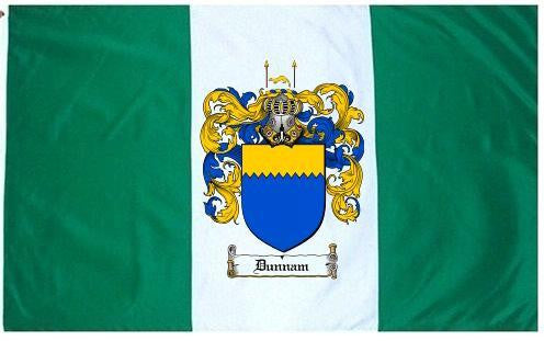 Dunnam Family Crest Flag / Coat of Arms Flag. You will receive a high quality 3' x 5' Polyester flag with two brass grommets. Proudly display your family heritage with this flag, or hang as a banner on a wall. Our flags make great gifts for birthdays, weddings, anniversaries, fathers day, mothers day, groomsmen gifts, and any other occasion