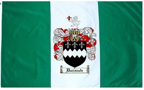 Durande Family Crest Flag / Coat of Arms Flag. You will receive a high quality 3' x 5' Polyester flag with two brass grommets. Proudly display your family heritage with this flag, or hang as a banner on a wall. Our flags make great gifts for birthdays, weddings, anniversaries, fathers day, mothers day, groomsmen gifts, and any other occasion