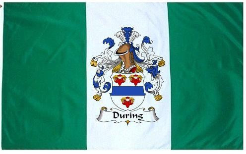 During Family Crest Flag / Coat of Arms Flag. You will receive a high quality 3' x 5' Polyester flag with two brass grommets. Proudly display your family heritage with this flag, or hang as a banner on a wall. Our flags make great gifts for birthdays, weddings, anniversaries, fathers day, mothers day, groomsmen gifts, and any other occasion