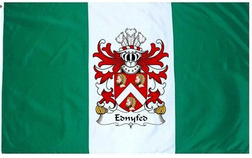 Ednyfed Family Crest Flag / Coat of Arms Flag. You will receive a high quality 3' x 5' Polyester flag with two brass grommets. Proudly display your family heritage with this flag, or hang as a banner on a wall. Our flags make great gifts for birthdays, weddings, anniversaries, fathers day, mothers day, groomsmen gifts, and any other occasion