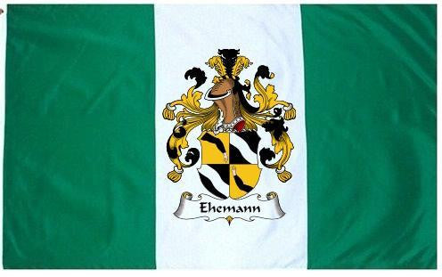 Ehemann Family Crest Flag / Coat of Arms Flag. You will receive a high quality 3' x 5' Polyester flag with two brass grommets. Proudly display your family heritage with this flag, or hang as a banner on a wall. Our flags make great gifts for birthdays, weddings, anniversaries, fathers day, mothers day, groomsmen gifts, and any other occasion