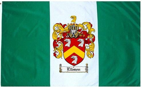 Elleson Family Crest Flag / Coat of Arms Flag. You will receive a high quality 3' x 5' Polyester flag with two brass grommets. Proudly display your family heritage with this flag, or hang as a banner on a wall. Our flags make great gifts for birthdays, weddings, anniversaries, fathers day, mothers day, groomsmen gifts, and any other occasion