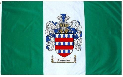 Engaine Family Crest Flag / Coat of Arms Flag. You will receive a high quality 3' x 5' Polyester flag with two brass grommets. Proudly display your family heritage with this flag, or hang as a banner on a wall. Our flags make great gifts for birthdays, weddings, anniversaries, fathers day, mothers day, groomsmen gifts, and any other occasion