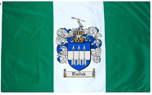 Enrick Family Crest Flag / Coat of Arms Flag. You will receive a high quality 3' x 5' Polyester flag with two brass grommets. Proudly display your family heritage with this flag, or hang as a banner on a wall. Our flags make great gifts for birthdays, weddings, anniversaries, fathers day, mothers day, groomsmen gifts, and any other occasion