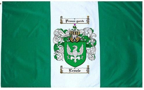 Ernele Family Crest Flag / Coat of Arms Flag. You will receive a high quality 3' x 5' Polyester flag with two brass grommets. Proudly display your family heritage with this flag, or hang as a banner on a wall. Our flags make great gifts for birthdays, weddings, anniversaries, fathers day, mothers day, groomsmen gifts, and any other occasion