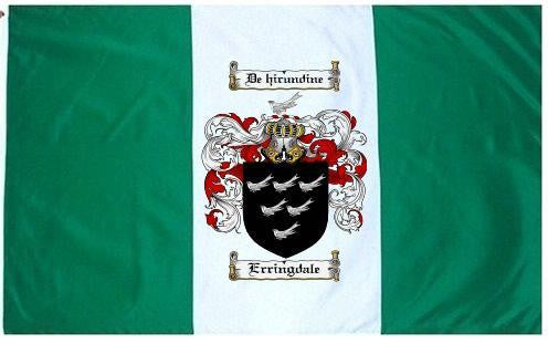 Erringdale Family Crest Flag / Coat of Arms Flag. You will receive a high quality 3' x 5' Polyester flag with two brass grommets. Proudly display your family heritage with this flag, or hang as a banner on a wall. Our flags make great gifts for birthdays, weddings, anniversaries, fathers day, mothers day, groomsmen gifts, and any other occasion