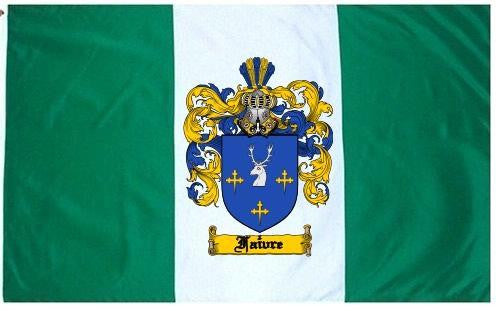 Faivre Family Crest Flag / Coat of Arms Flag. You will receive a high quality 3' x 5' Polyester flag with two brass grommets. Proudly display your family heritage with this flag, or hang as a banner on a wall. Our flags make great gifts for birthdays, weddings, anniversaries, fathers day, mothers day, groomsmen gifts, and any other occasion
