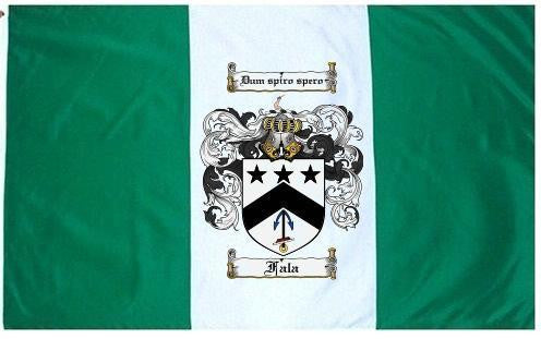 Fala Family Crest Flag / Coat of Arms Flag. You will receive a high quality 3' x 5' Polyester flag with two brass grommets. Proudly display your family heritage with this flag, or hang as a banner on a wall. Our flags make great gifts for birthdays, weddings, anniversaries, fathers day, mothers day, groomsmen gifts, and any other occasion