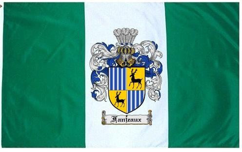 Fanjeaux Family Crest Flag / Coat of Arms Flag. You will receive a high quality 3' x 5' Polyester flag with two brass grommets. Proudly display your family heritage with this flag, or hang as a banner on a wall. Our flags make great gifts for birthdays, weddings, anniversaries, fathers day, mothers day, groomsmen gifts, and any other occasion