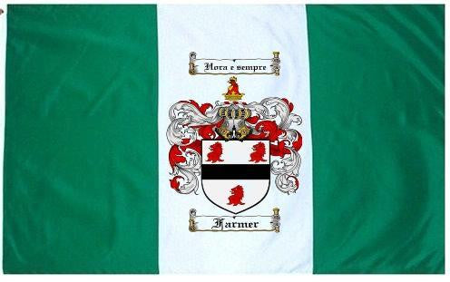 Farmer Family Crest Flag / Coat of Arms Flag. You will receive a high quality 3' x 5' Polyester flag with two brass grommets. Proudly display your family heritage with this flag, or hang as a banner on a wall. Our flags make great gifts for birthdays, weddings, anniversaries, fathers day, mothers day, groomsmen gifts, and any other occasion