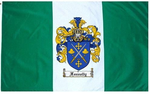 Fennelly Family Crest Flag / Coat of Arms Flag. You will receive a high quality 3' x 5' Polyester flag with two brass grommets. Proudly display your family heritage with this flag, or hang as a banner on a wall. Our flags make great gifts for birthdays, weddings, anniversaries, fathers day, mothers day, groomsmen gifts, and any other occasion