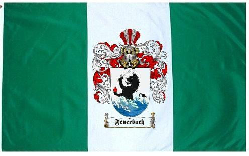 Feuerbach Family Crest Flag / Coat of Arms Flag. You will receive a high quality 3' x 5' Polyester flag with two brass grommets. Proudly display your family heritage with this flag, or hang as a banner on a wall. Our flags make great gifts for birthdays, weddings, anniversaries, fathers day, mothers day, groomsmen gifts, and any other occasion
