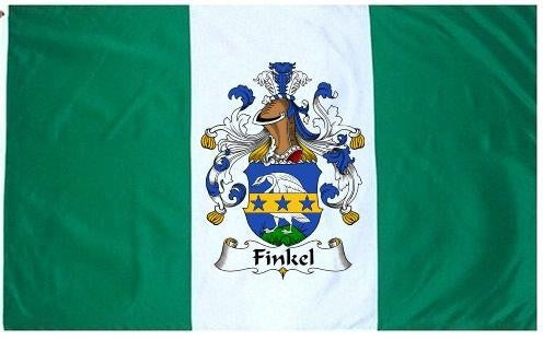 Finkel Family Crest Flag / Coat of Arms Flag. You will receive a high quality 3' x 5' Polyester flag with two brass grommets. Proudly display your family heritage with this flag, or hang as a banner on a wall. Our flags make great gifts for birthdays, weddings, anniversaries, fathers day, mothers day, groomsmen gifts, and any other occasion