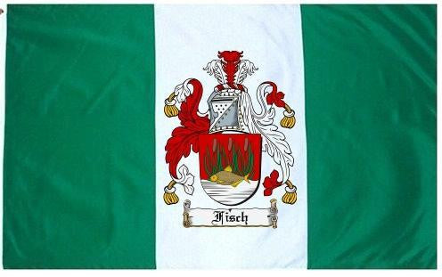 Fisch Family Crest Flag / Coat of Arms Flag. You will receive a high quality 3' x 5' Polyester flag with two brass grommets. Proudly display your family heritage with this flag, or hang as a banner on a wall. Our flags make great gifts for birthdays, weddings, anniversaries, fathers day, mothers day, groomsmen gifts, and any other occasion