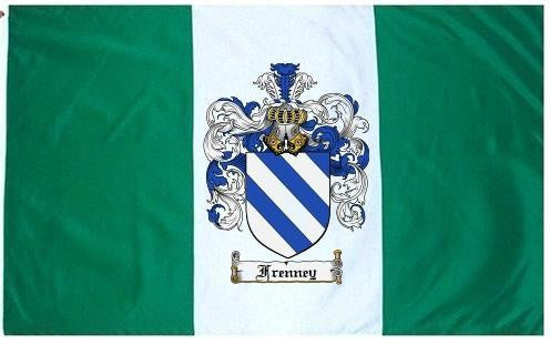 Frenney Family Crest Flag / Coat of Arms Flag. You will receive a high quality 3' x 5' Polyester flag with two brass grommets. Proudly display your family heritage with this flag, or hang as a banner on a wall. Our flags make great gifts for birthdays, weddings, anniversaries, fathers day, mothers day, groomsmen gifts, and any other occasion