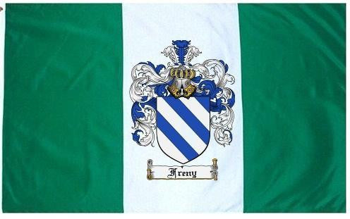 Freny Family Crest Flag / Coat of Arms Flag. You will receive a high quality 3' x 5' Polyester flag with two brass grommets. Proudly display your family heritage with this flag, or hang as a banner on a wall. Our flags make great gifts for birthdays, weddings, anniversaries, fathers day, mothers day, groomsmen gifts, and any other occasion