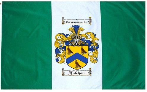 Fulchon Family Crest Flag / Coat of Arms Flag. You will receive a high quality 3' x 5' Polyester flag with two brass grommets. Proudly display your family heritage with this flag, or hang as a banner on a wall. Our flags make great gifts for birthdays, weddings, anniversaries, fathers day, mothers day, groomsmen gifts, and any other occasion
