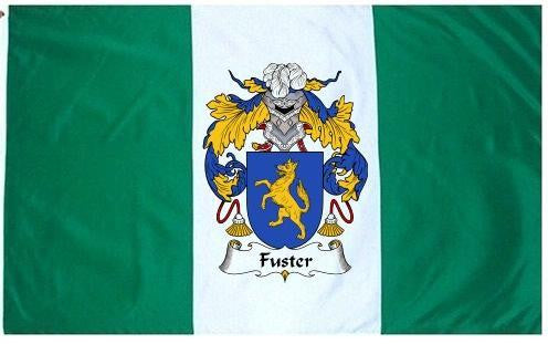 Fuster Family Crest Flag / Coat of Arms Flag. You will receive a high quality 3' x 5' Polyester flag with two brass grommets. Proudly display your family heritage with this flag, or hang as a banner on a wall. Our flags make great gifts for birthdays, weddings, anniversaries, fathers day, mothers day, groomsmen gifts, and any other occasion