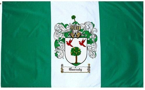 Garraty Family Crest Flag / Coat of Arms Flag. You will receive a high quality 3' x 5' Polyester flag with two brass grommets. Proudly display your family heritage with this flag, or hang as a banner on a wall. Our flags make great gifts for birthdays, weddings, anniversaries, fathers day, mothers day, groomsmen gifts, and any other occasion