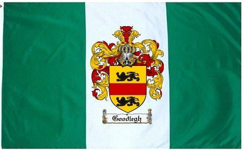 Goodlegh Family Crest Flag / Coat of Arms Flag. You will receive a high quality 3' x 5' Polyester flag with two brass grommets. Proudly display your family heritage with this flag, or hang as a banner on a wall. Our flags make great gifts for birthdays, weddings, anniversaries, fathers day, mothers day, groomsmen gifts, and any other occasion