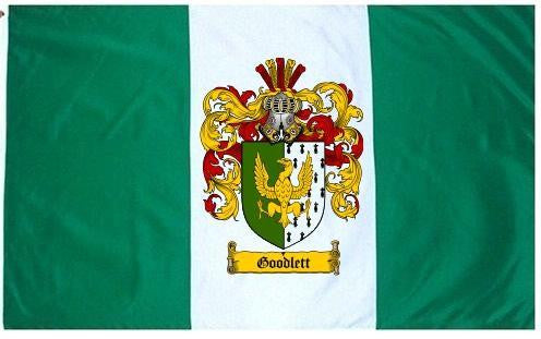 Goodlett Family Crest Flag / Coat of Arms Flag. You will receive a high quality 3' x 5' Polyester flag with two brass grommets. Proudly display your family heritage with this flag, or hang as a banner on a wall. Our flags make great gifts for birthdays, weddings, anniversaries, fathers day, mothers day, groomsmen gifts, and any other occasion