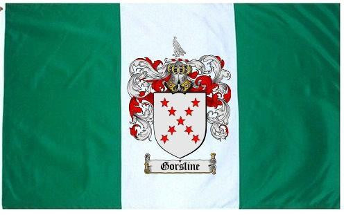Gorsline Family Crest Flag / Coat of Arms Flag. You will receive a high quality 3' x 5' Polyester flag with two brass grommets. Proudly display your family heritage with this flag, or hang as a banner on a wall. Our flags make great gifts for birthdays, weddings, anniversaries, fathers day, mothers day, groomsmen gifts, and any other occasion