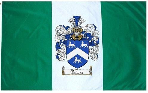 Gowar Family Crest Flag / Coat of Arms Flag. You will receive a high quality 3' x 5' Polyester flag with two brass grommets. Proudly display your family heritage with this flag, or hang as a banner on a wall. Our flags make great gifts for birthdays, weddings, anniversaries, fathers day, mothers day, groomsmen gifts, and any other occasion