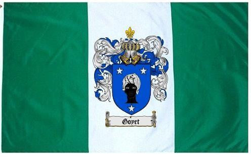 Goyet Family Crest Flag / Coat of Arms Flag. You will receive a high quality 3' x 5' Polyester flag with two brass grommets. Proudly display your family heritage with this flag, or hang as a banner on a wall. Our flags make great gifts for birthdays, weddings, anniversaries, fathers day, mothers day, groomsmen gifts, and any other occasion