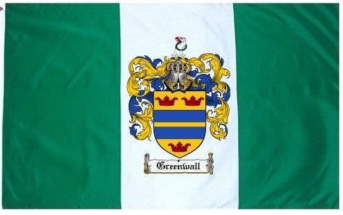 Greenwall Family Crest Flag / Coat of Arms Flag. You will receive a high quality 3' x 5' Polyester flag with two brass grommets. Proudly display your family heritage with this flag, or hang as a banner on a wall. Our flags make great gifts for birthdays, weddings, anniversaries, fathers day, mothers day, groomsmen gifts, and any other occasion