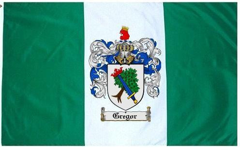 Gregor Family Crest Flag / Coat of Arms Flag. You will receive a high quality 3' x 5' Polyester flag with two brass grommets. Proudly display your family heritage with this flag, or hang as a banner on a wall. Our flags make great gifts for birthdays, weddings, anniversaries, fathers day, mothers day, groomsmen gifts, and any other occasion