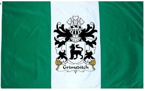 Grimsditch Family Crest Flag / Coat of Arms Flag. You will receive a high quality 3' x 5' Polyester flag with two brass grommets. Proudly display your family heritage with this flag, or hang as a banner on a wall. Our flags make great gifts for birthdays, weddings, anniversaries, fathers day, mothers day, groomsmen gifts, and any other occasion