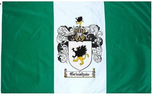 Grinshaw Family Crest Flag / Coat of Arms Flag. You will receive a high quality 3' x 5' Polyester flag with two brass grommets. Proudly display your family heritage with this flag, or hang as a banner on a wall. Our flags make great gifts for birthdays, weddings, anniversaries, fathers day, mothers day, groomsmen gifts, and any other occasion