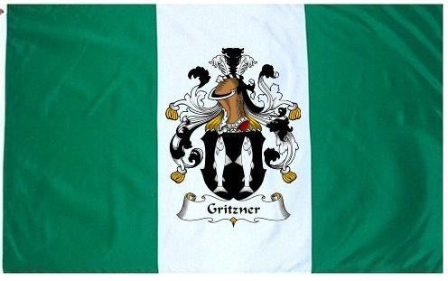 Gritzner Family Crest Flag / Coat of Arms Flag. You will receive a high quality 3' x 5' Polyester flag with two brass grommets. Proudly display your family heritage with this flag, or hang as a banner on a wall. Our flags make great gifts for birthdays, weddings, anniversaries, fathers day, mothers day, groomsmen gifts, and any other occasion