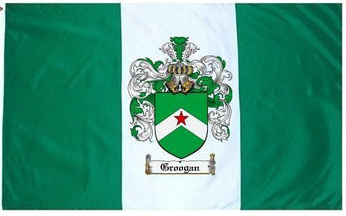 Groogan Family Crest Flag / Coat of Arms Flag. You will receive a high quality 3' x 5' Polyester flag with two brass grommets. Proudly display your family heritage with this flag, or hang as a banner on a wall. Our flags make great gifts for birthdays, weddings, anniversaries, fathers day, mothers day, groomsmen gifts, and any other occasion