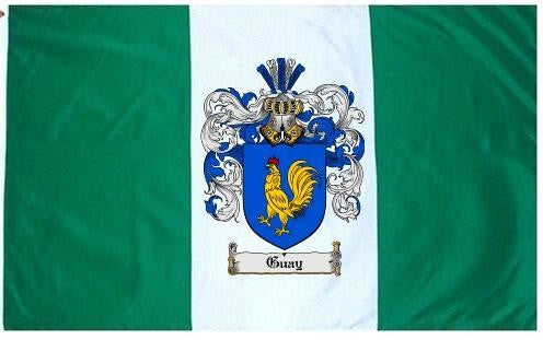 Guay Family Crest Flag / Coat of Arms Flag. You will receive a high quality 3' x 5' Polyester flag with two brass grommets. Proudly display your family heritage with this flag, or hang as a banner on a wall. Our flags make great gifts for birthdays, weddings, anniversaries, fathers day, mothers day, groomsmen gifts, and any other occasion